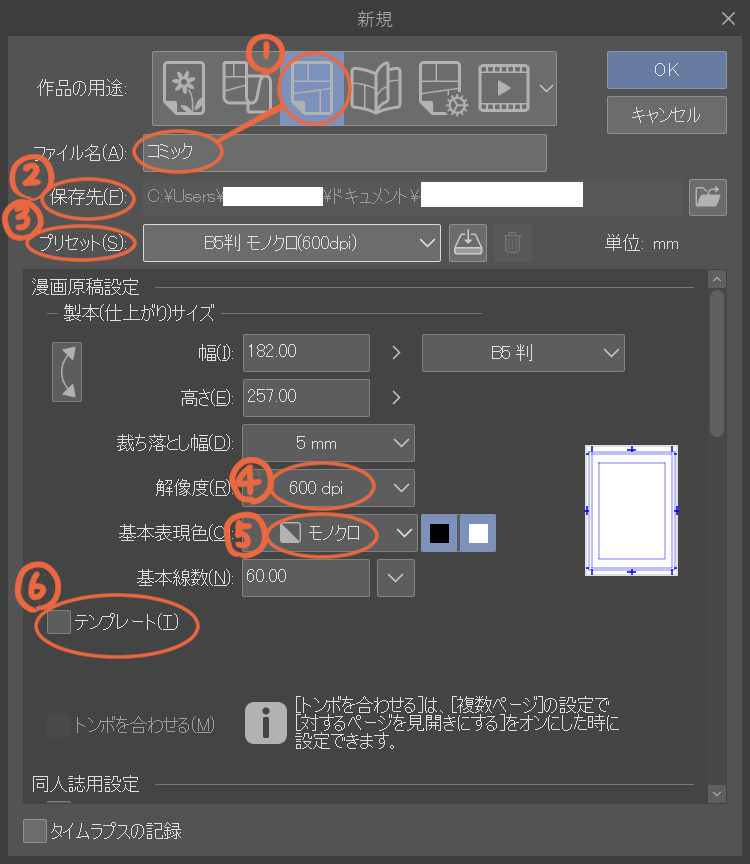 今回は練習用なので私はB5判を選んでいますが 商業誌などに投稿する場合は 指定されている判 または大きめの判を選んで下さい
