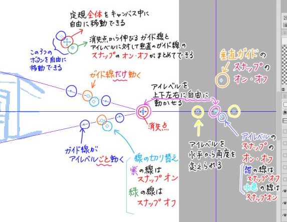 ※3点透視 の場合は アイレベルに対して垂直のガイド線 は表示されません